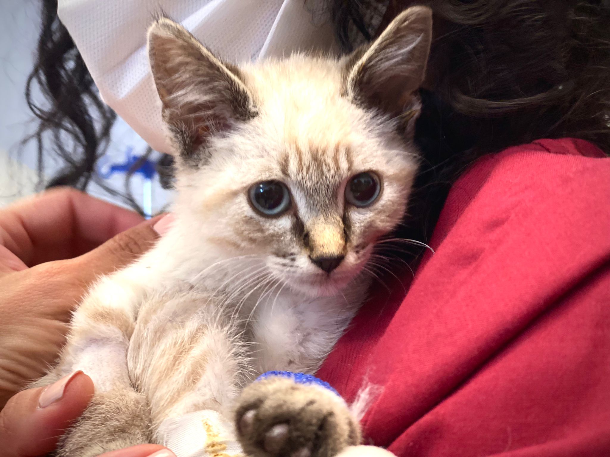 Più che un musetto che stringe il cuore quella di Twix è una storia da ascoltare: una vita che avrà un futuro grazie alla concatenazione di persone buone e competenti. La prima immagine di questa storia è, purtroppo, dai contorni splatter: questo gattino di due mesi, infatti, è stato ritrovato in una piazzola di sosta dell’autostrada del Brennero da Roland, un dipendente di A22. Aveva la zampa posteriore sinistra completamente in frantumi con fratture esposte, una parte di coda necrotica e altre ferite alla zampa posteriore destra. Un micino devastato. Roland che è un uomo sveglio (oltre che sensibile) ha immediatamente contattato la volontaria Shari Crivellari che, a sua volta, ha recuperato il cucciolo fiondandosi alla clinica veterinaria “Città di Bolzano” di via Resia. Qui Twix ha trovato cure e…un futuro.